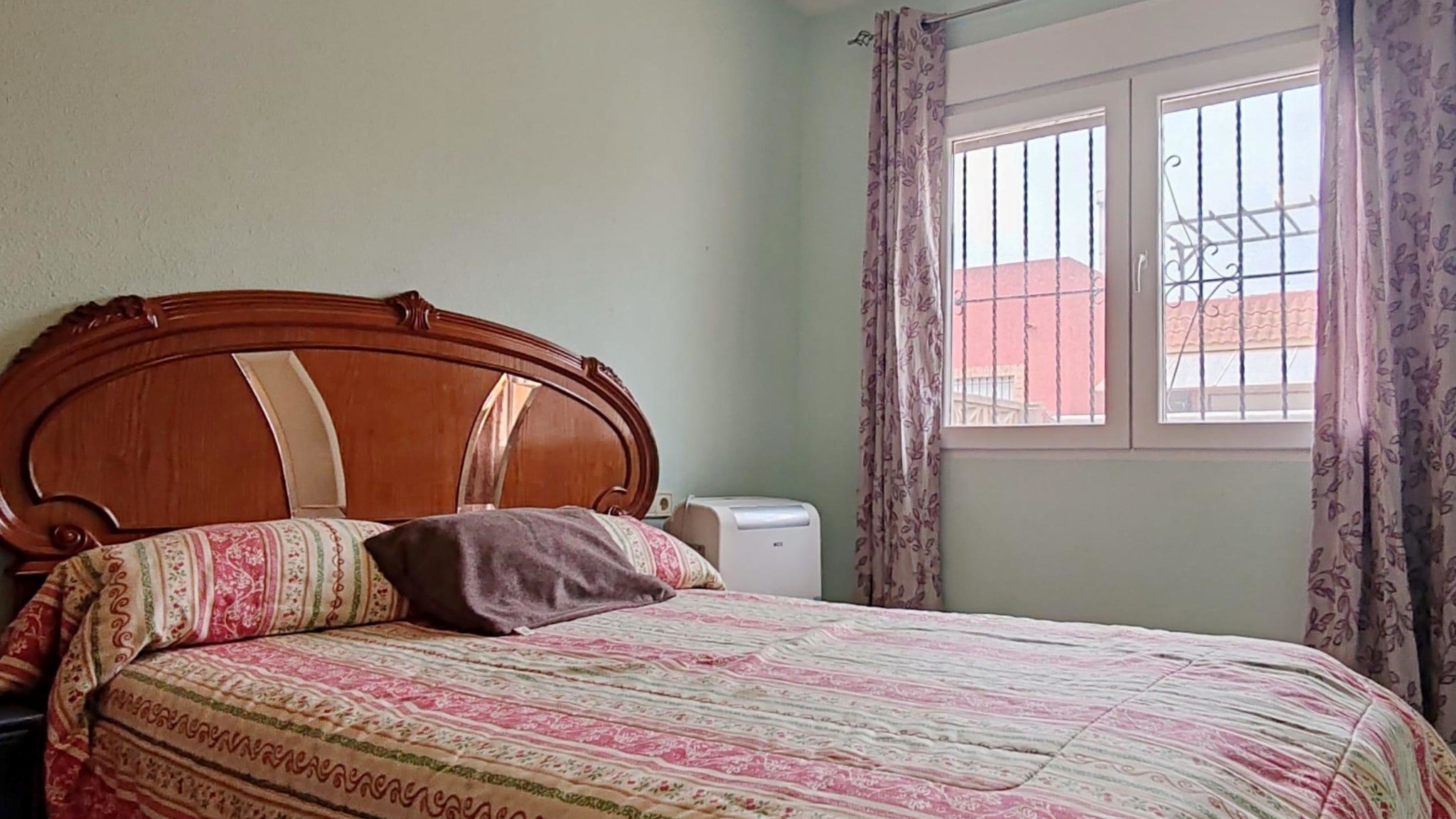 En el ala izquierda se ubica un cuarto dormitorio muy amplio con ventana al porche, utilizado actualmente como cuarto de desahogo, junto a un segundo baño completo con bañera, toallero eléctrico y claraboya. La cocina, totalmente equipada con horno, vitrocerámica, lavavajillas y frigorífico, conecta con un práctico lavadero interior que alberga la lavadora y un termo eléctrico de 100 litros. Al fondo, descubrimos el dormitorio principal de matrimonio, una estancia de dimensiones espectaculares con cama de 2 metros, doble armario empotrado, ventilador de techo y aire acondicionado propio.